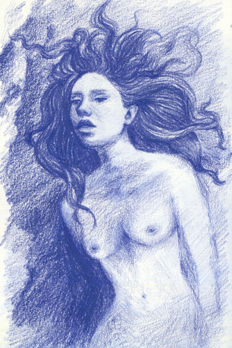 I created a book with a collection of historical descriptions, poems, songs, and stories describing mermaids and sirens. My colored pencil drawings are weaved throughout the book to accompany the compiled writings.